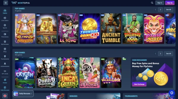 - Fedeltà : Wintopia Shop ti consente di scambiare monete con free spin e denaro bonus, ottenuti tramite puntate e obiettivi.